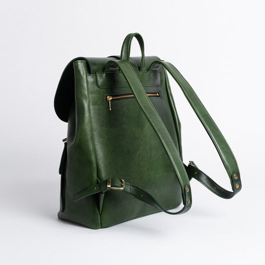 Traveller's Backpack in Vegetable Tanned Green Leather