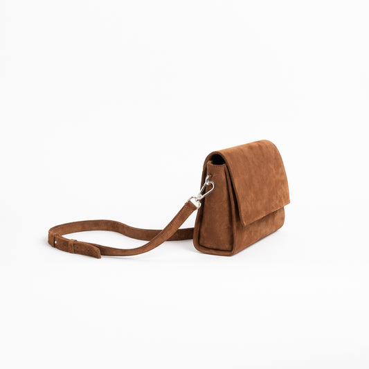 FLOW Shoulder Bag in Camel Suede