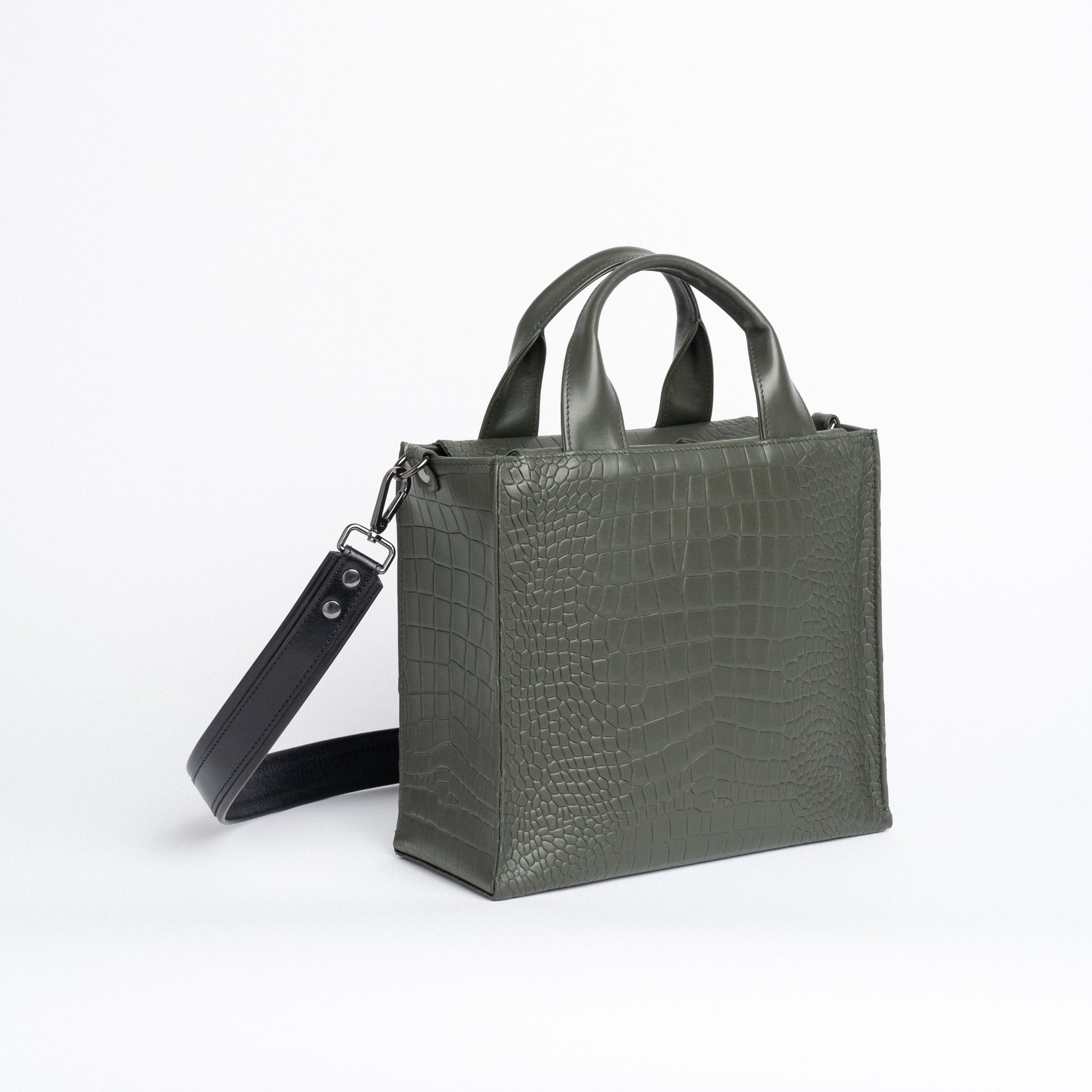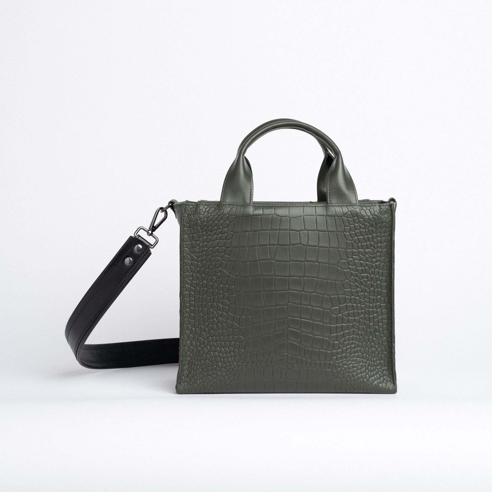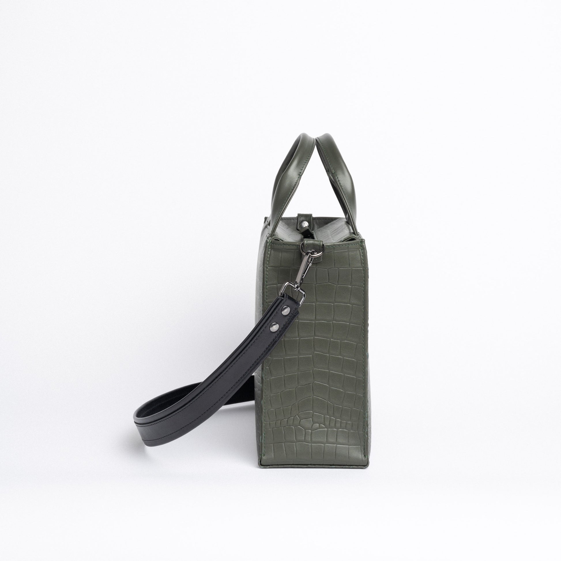 With its sleek and sophisticated appearance, Fair & Square bag adds a touch of luxury to any ensemble. The rich dark green is always elegant, while the embossed crocodile pattern adds texture and depth, making a bold statement wherever you go.