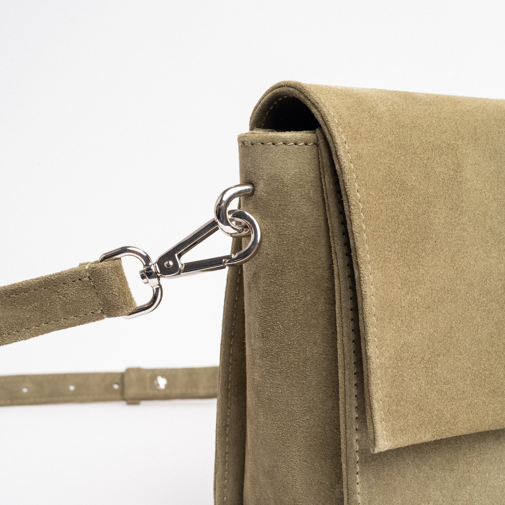 - Crafted from genuine Italian suede in pistachio colour;