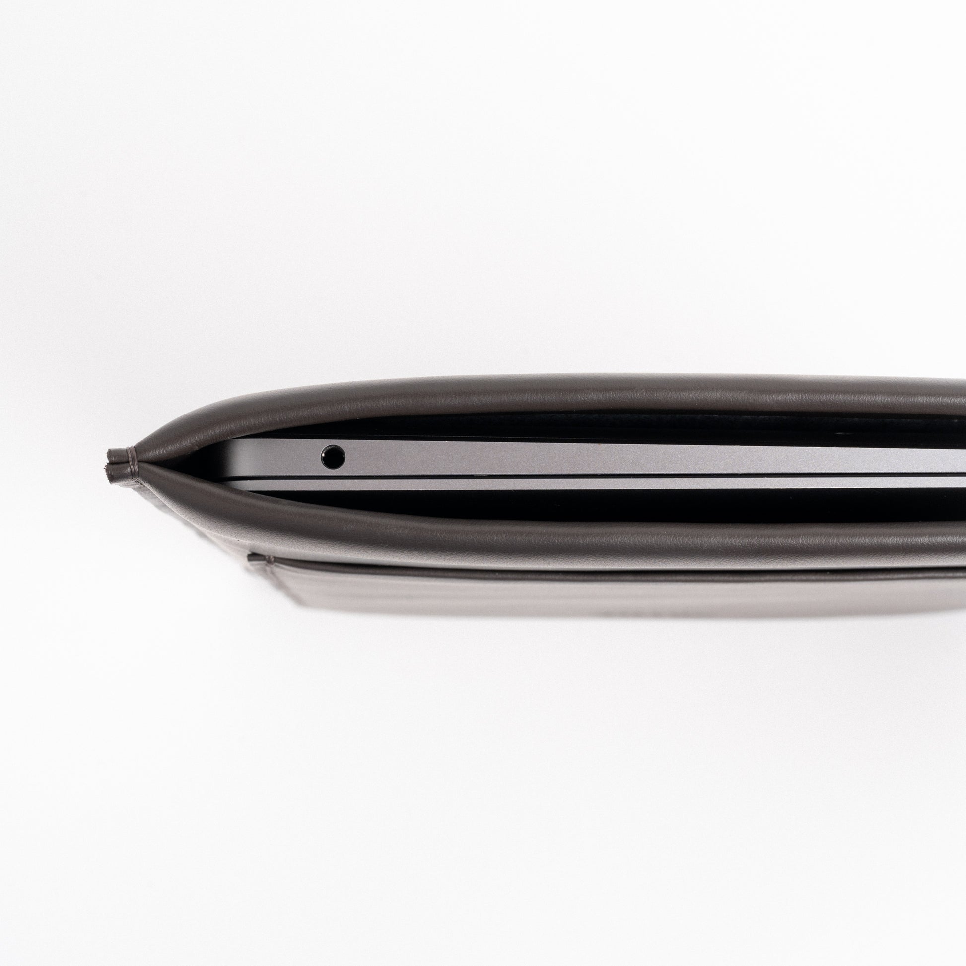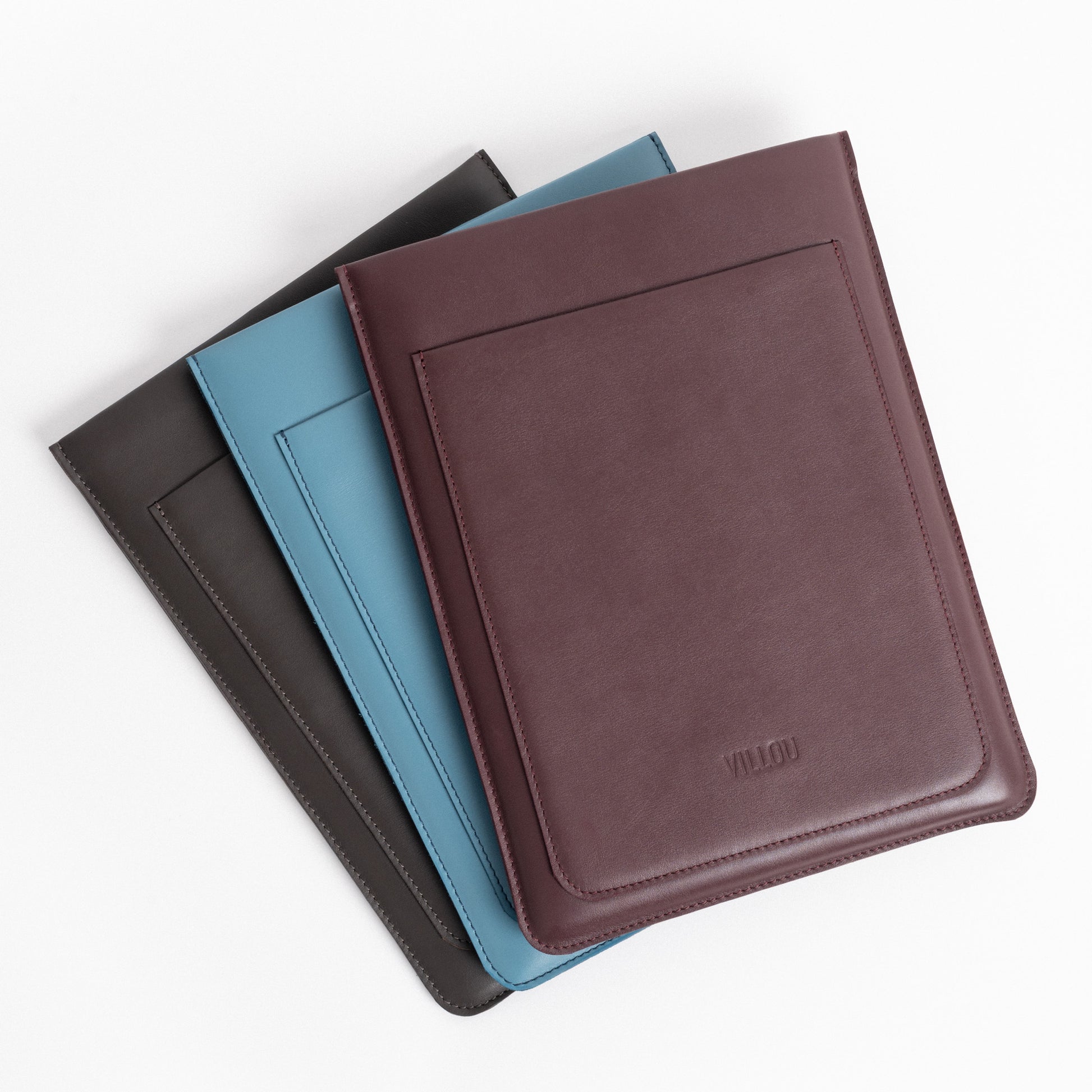 A minimal silhouette with thoughtful functionality—this Laptop case is crafted from genuine leather and designed to protect your essentials with elegance. Sized to fit a 13.3" MacBook Air, it features a front pocket perfectly tailored for an A5 notebook or slim accessories.