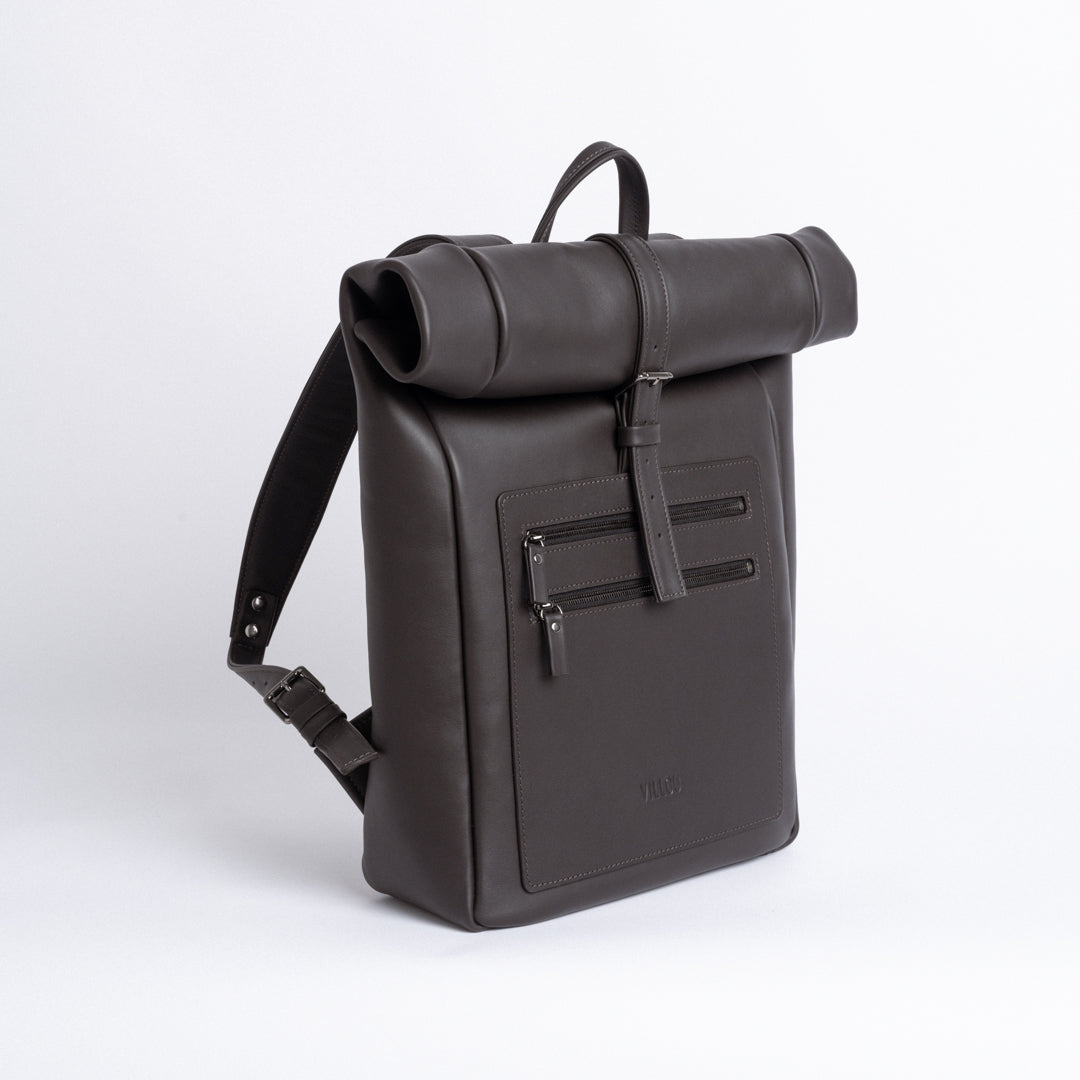 Handcrafted from genuine and luxurious Italian leather, this roll-top backpack is a statement piece for some wider shoulders.