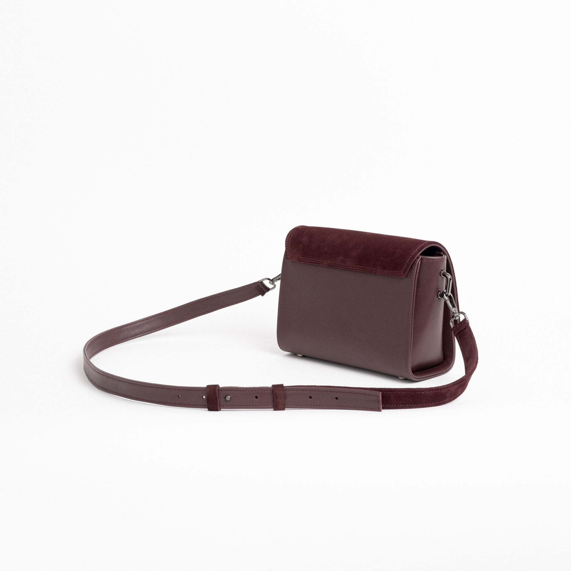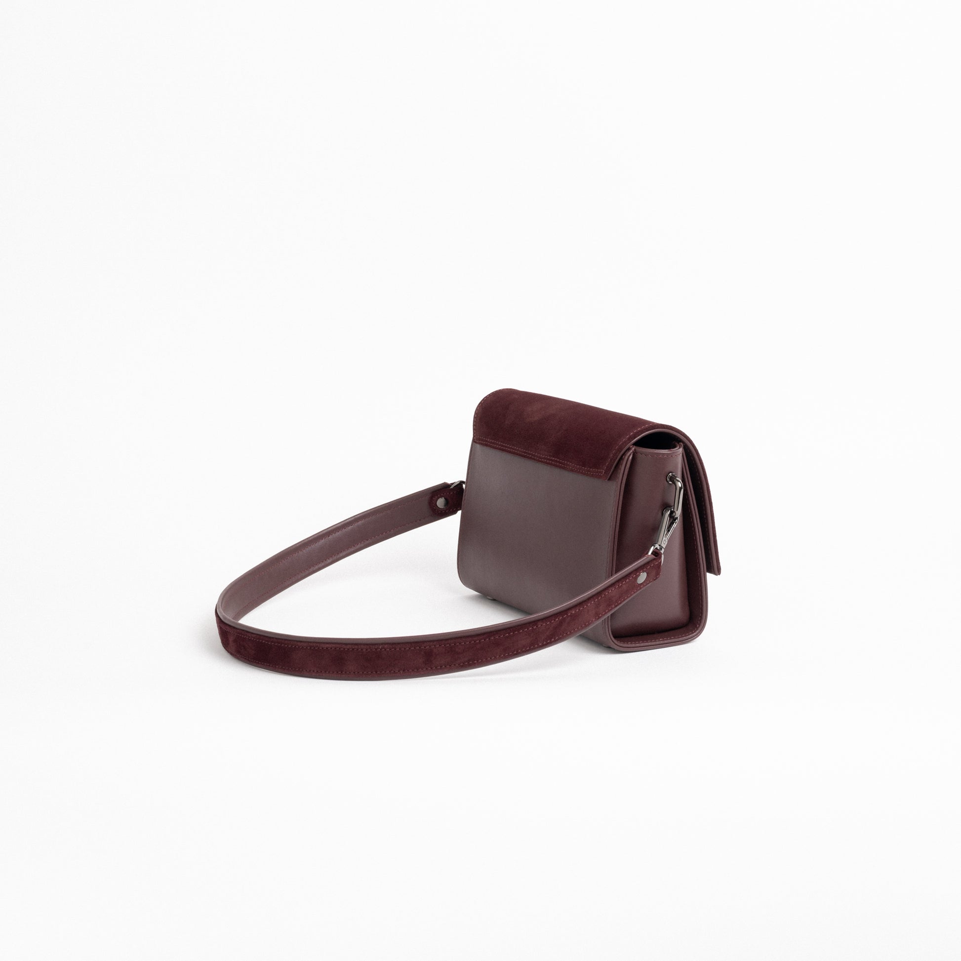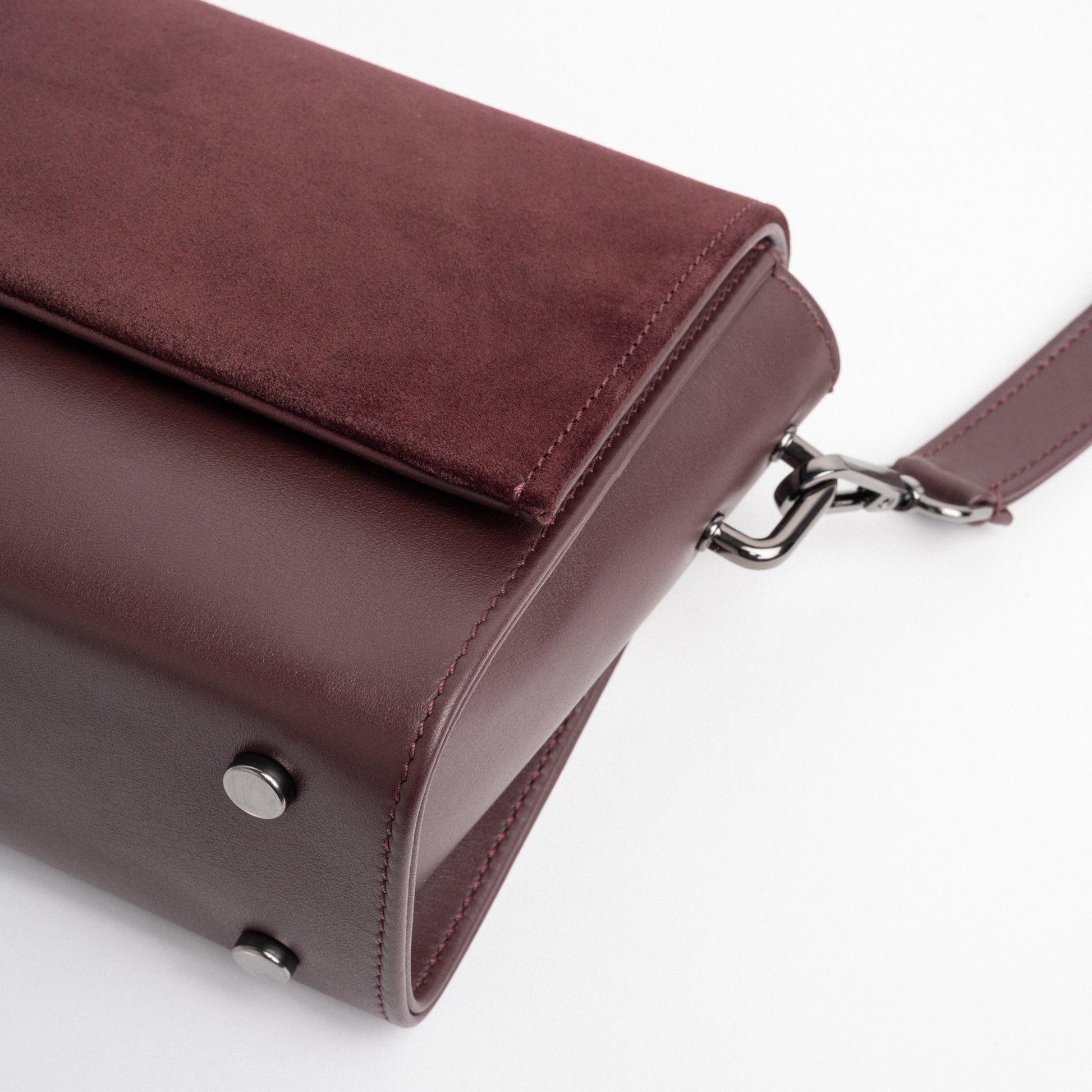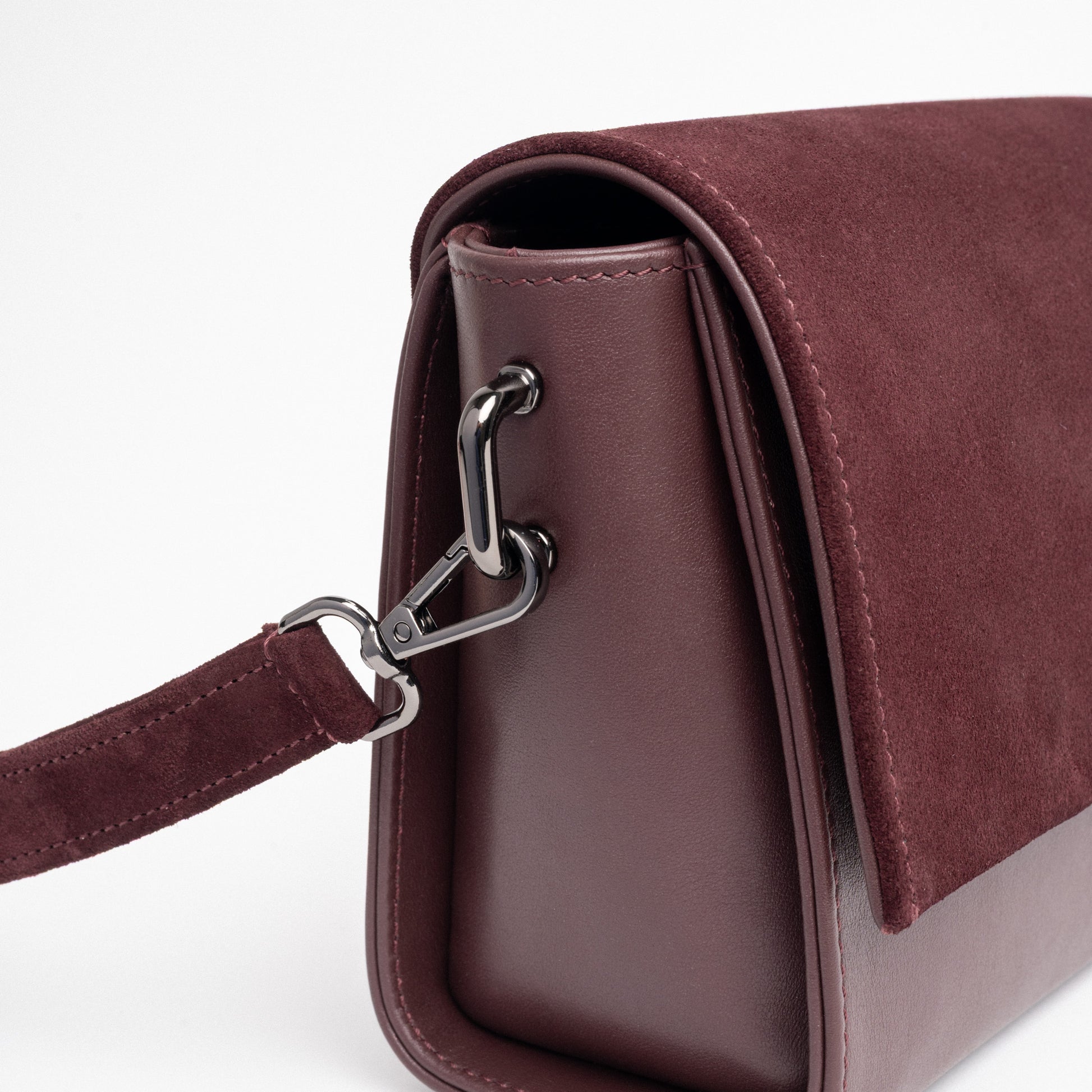 - Crafted from genuine Italian suede and nappa in burgundy colour;