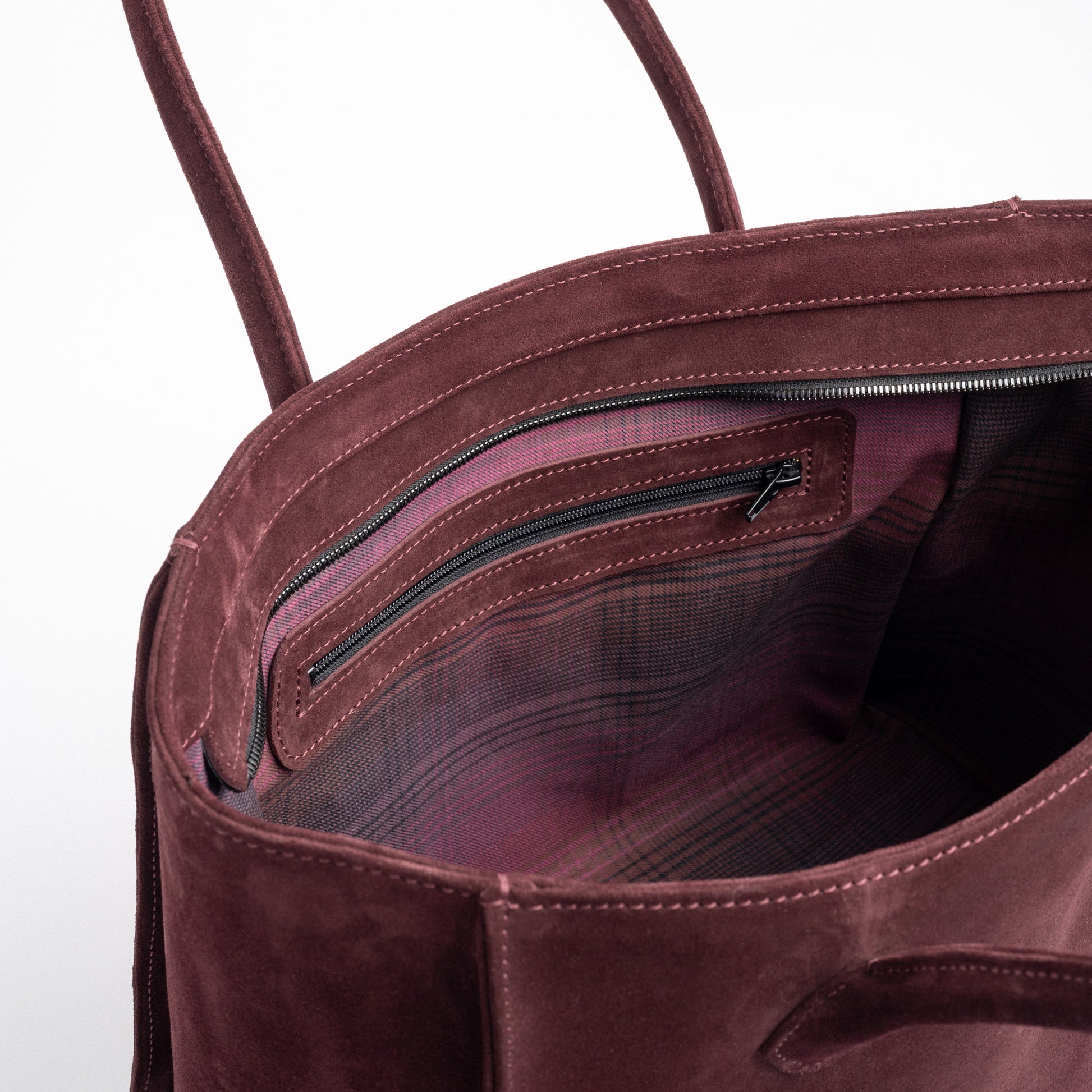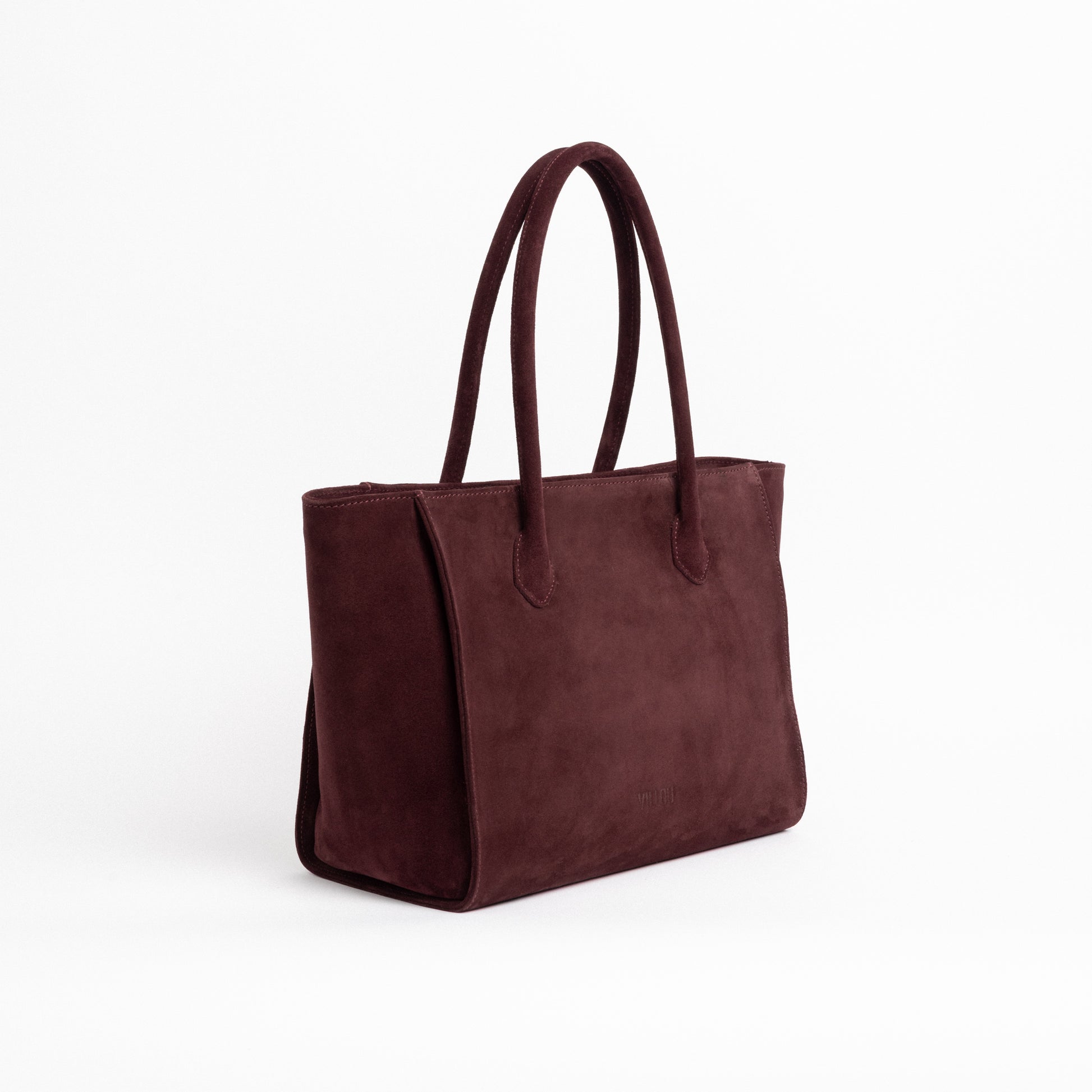 Meet Terra, the embodiment of quiet power. Crafted from rich burgundy suede with a velvety matte finish, this structured tote is both earthy and elegant — rooted in natural textures, refined for city life.